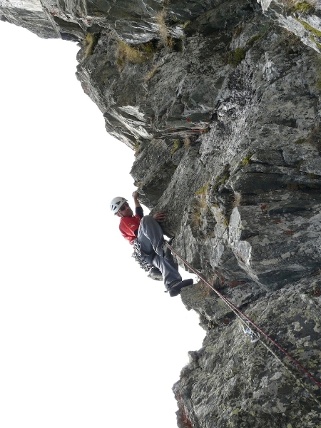 L14 40m. Superare la asperità della cresta lungo brevi ma divertenti passaggi sovente atletici. 5b, 4a