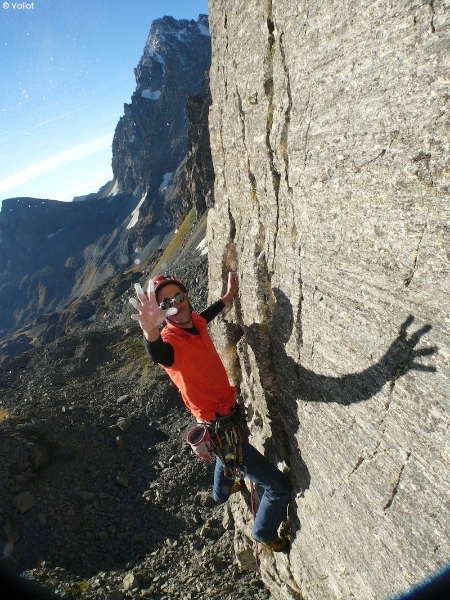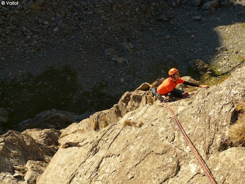 L9 30m. Continuare sull’itinerario della Cresta Est superando a sinistra un breve risalto fino alla base di uno sperone verticale. 3a
