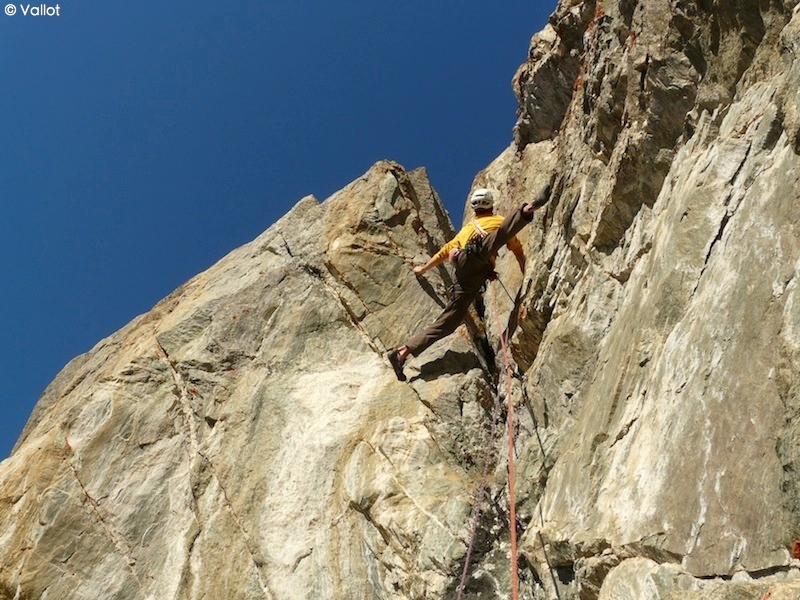 L11 20m. Lasciare a destra l’itinerario della Cresta Est e traversare a sinistra su tracce di sentiero per raggiungere la sosta di Visto per il Perù.